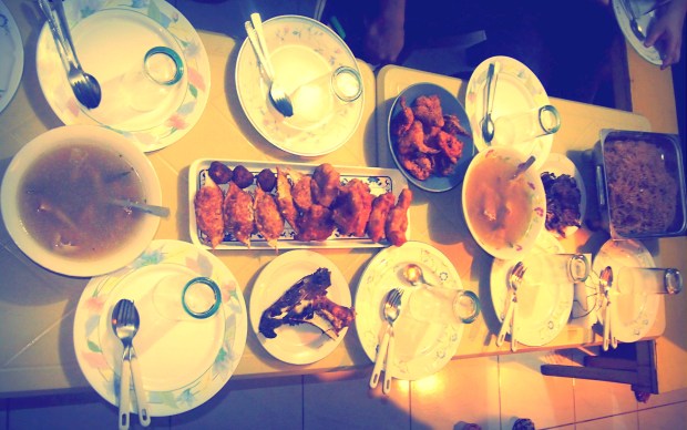 At around 9pm we had dinner at Guido’s, in a videoke room behind the stage, with servings of Kansi, stuffed crabs, meatballs, fried chicken wings, pansit, and grilled fish. Particularly enjoyed the flavorful Kansi and its soothing aroma of lemon grass. We weren’t prepared for what will come next. Mary’s mom and sister also followed to the bar and brought with them a box of Rico’s lechon from Cebu!